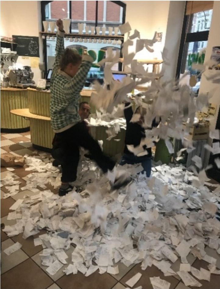 Und unser eigener Müll? Klar entsteht bei den Mengen, die wir umsetzen, auch Verpackungsmüll. Er besteht zu 90% aus Papier/Pappe und zu 10% aus Kunststoffen. Was nicht im Pfandsystem zurück gehen kann, entsorgen wir weitgehend selbst, und zwar fachgerecht und auf eigene Rechnung. Die Kosten sind eingepreist. Es entsteht aber auch unnötiger Müll aufgrund gesetzlicher Vorgaben. Beispielsweise sind wir verpflichtet, Kassenbons auszudrucken, selbst wenn unsere KundInnen sie nicht haben wollen. More brains, please…