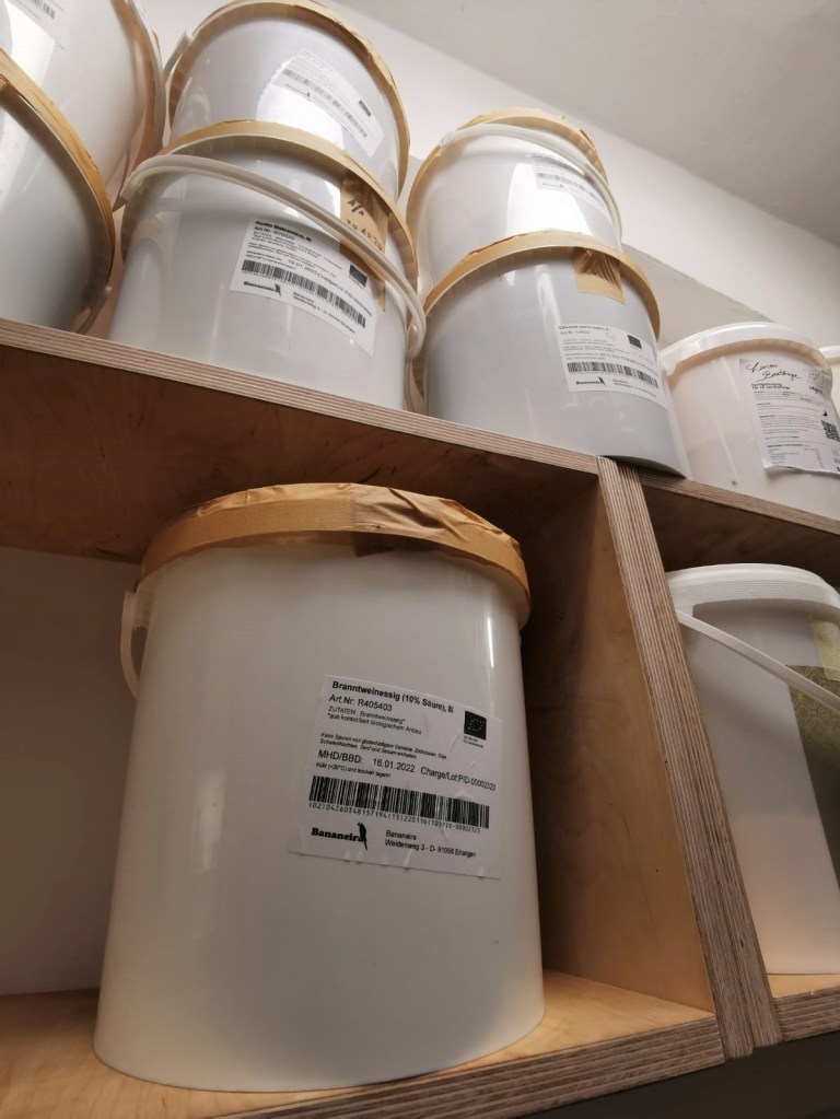 Das hat den Vorteil, dass die Ware direkt dicht verschlossen ist und erst geöffnet werden muss, wenn sie verwendet wird. Sobald einige Pfandeimer gesammelt wurden, können diese an den Lieferanten zurückgeschickt werden.